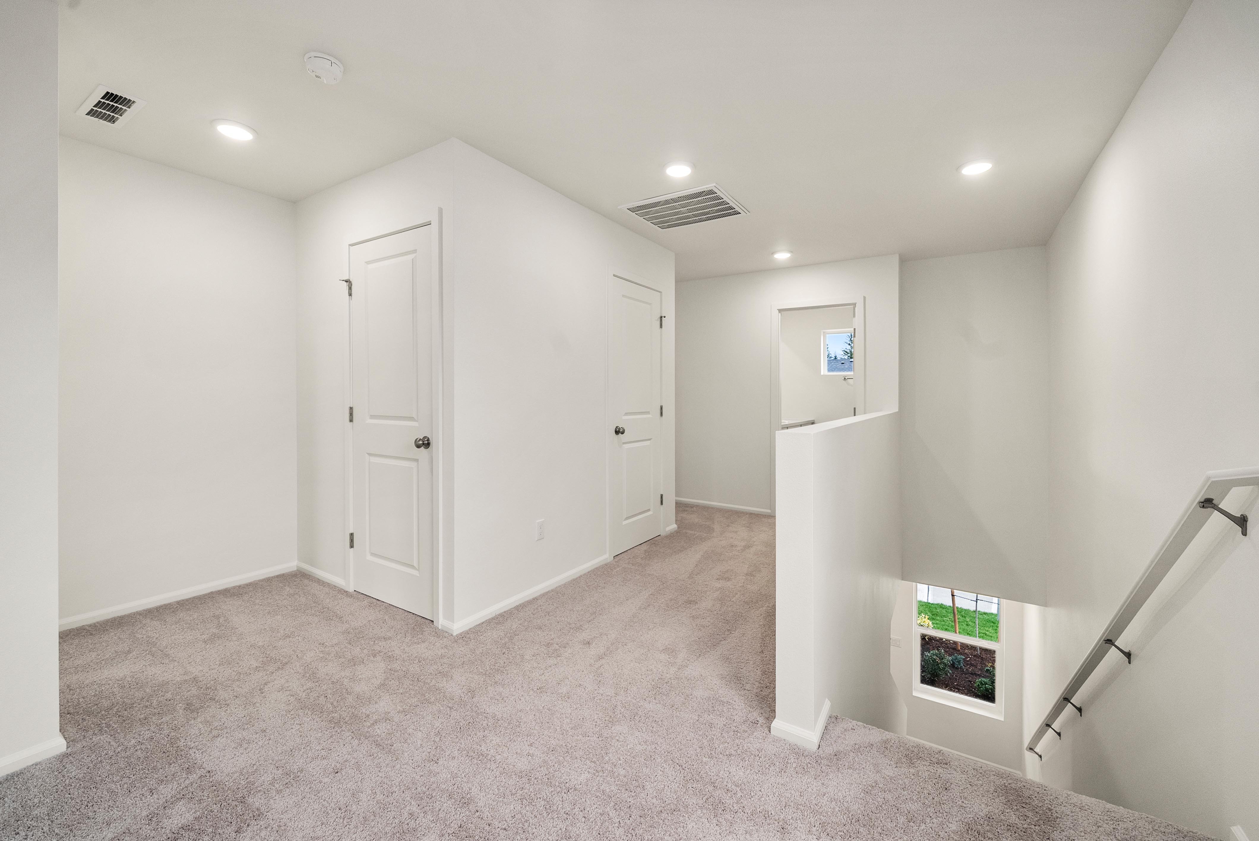 Additional included features like two-bay garages, 9’ ceilings on the main floor, luxury vinyl plank flooring, Ecobee® Premium Pro thermostats, and Schlage® electronic front door locks elevate everyday living. Select homesites also offer optional covered patios and open railings for added comfort and style.
